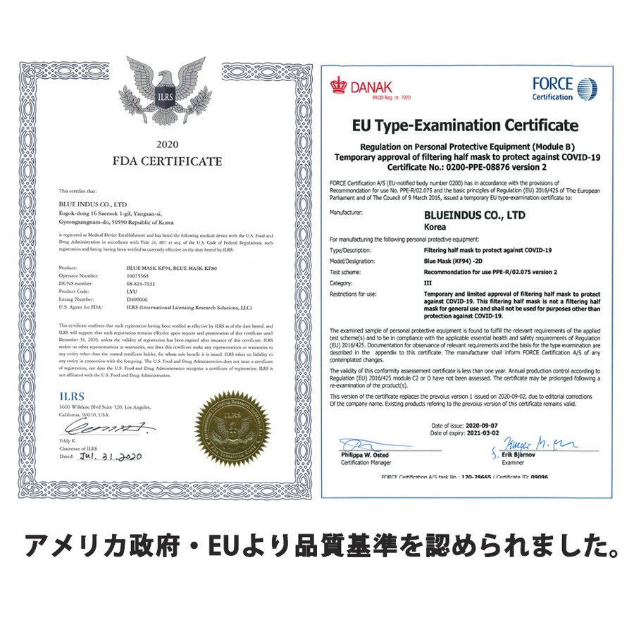 ★KF94とは0.4μ以下の超微細粒子を94%まで遮断すると認められた製品に与えられた認証です。
